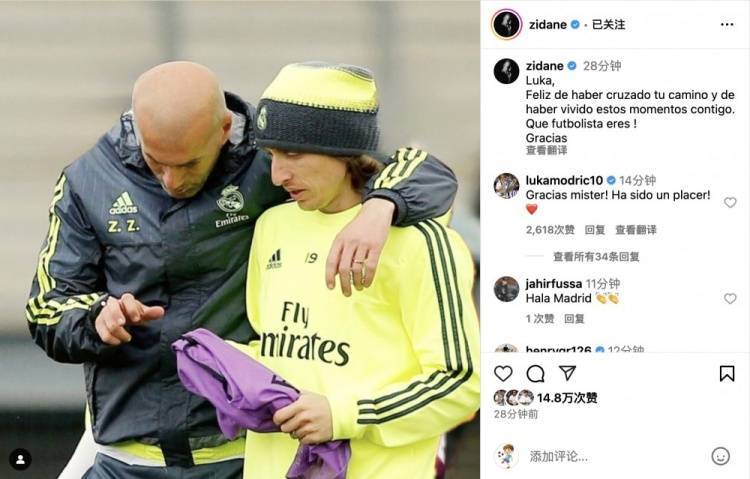 齐达内更新社交媒体晒照告别莫德里奇。